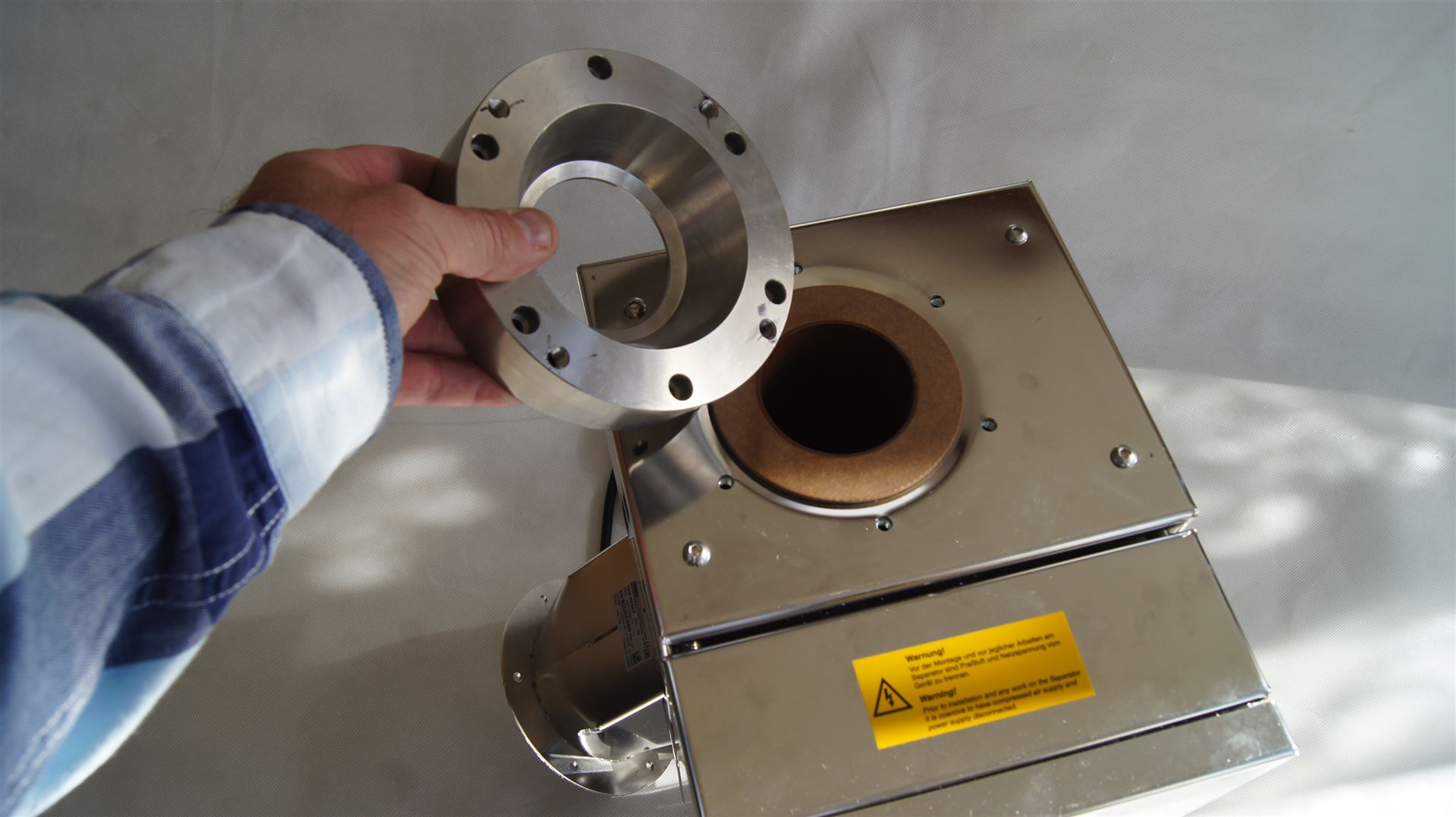 Abrasive Materialien verschleißen produktberührende Oberflächen des Abscheiders. Ohne Umbaumaßnahmen ist ein Gerätedefekt vorprogrammiert .Speziell für diese abrasiven Rahmenbedingungen kommen Glasrohre, sowie wechselbare Flansche zum Einsatz.