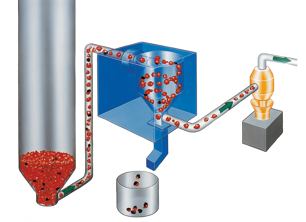 Dieser Metallabscheider entfernt auch bei variabler Materialgeschwindigkeit Metallrückstände aller Art vollautomatisch aus dem Produktstrom. Der Metallextraktor nutzt dazu eine justagefreie Zyklontechnologie.